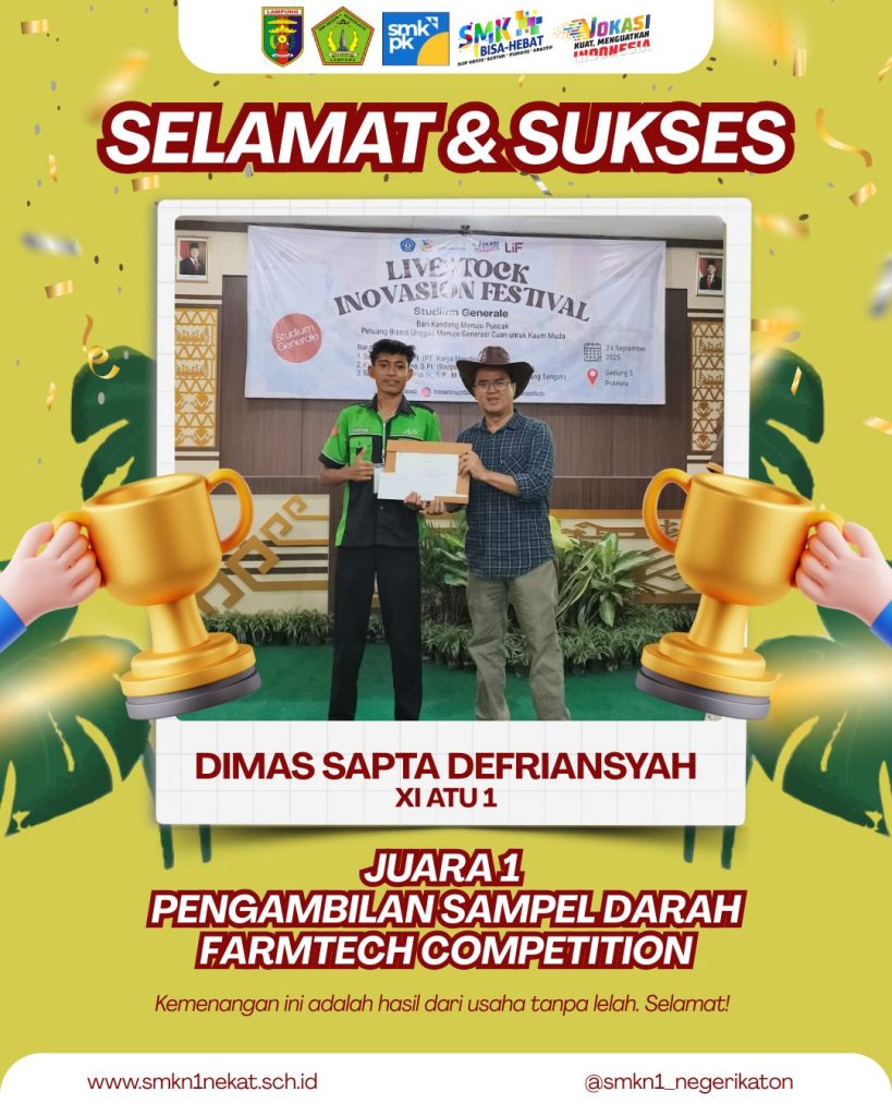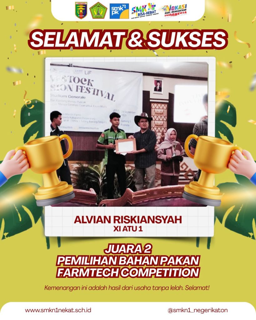 - Alvian Riskiansyah (XI ATU 1) meraih Juara 2 Pemilihan Bahan Pakan.